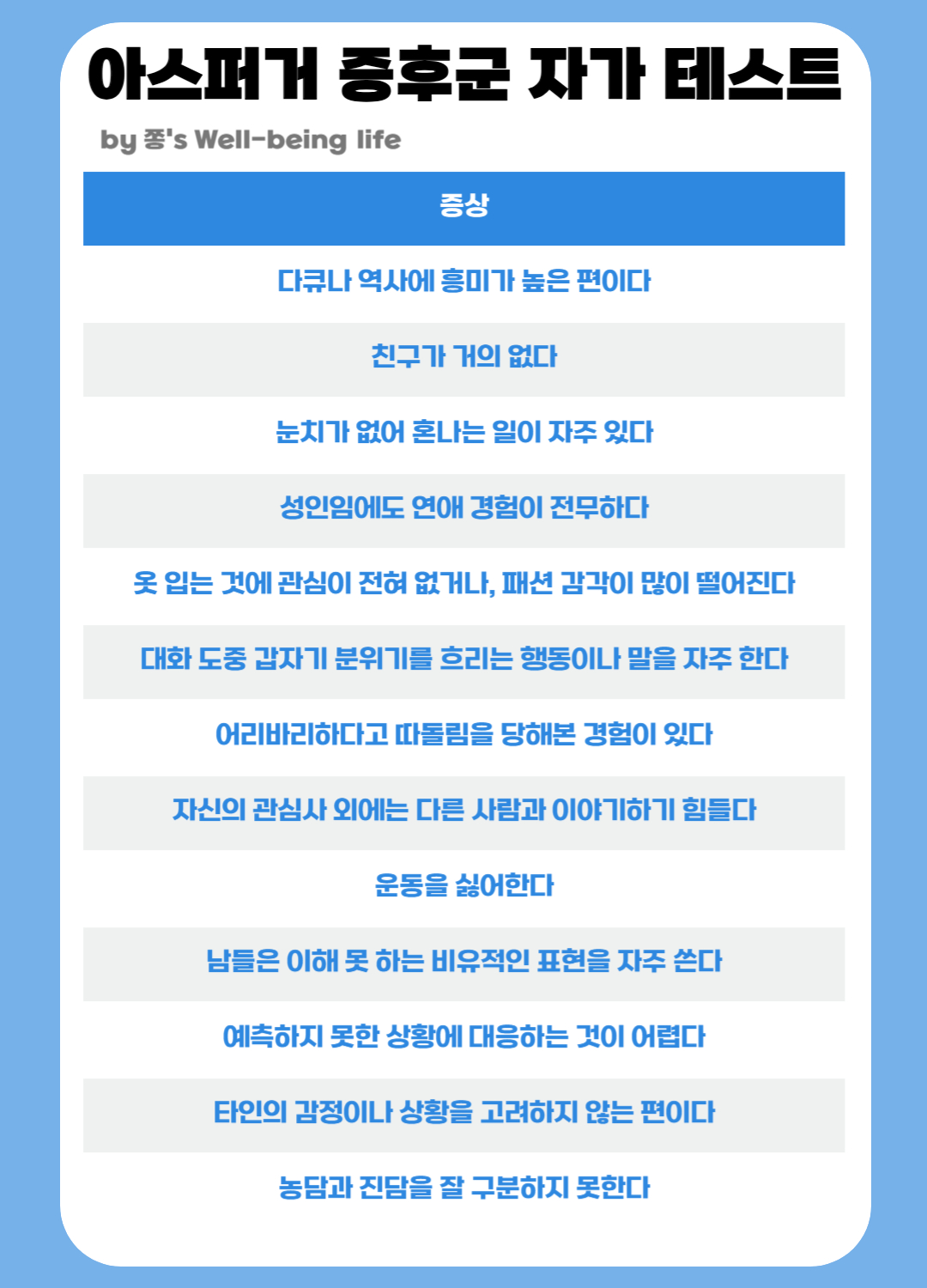 자폐 스펙트럼 중 하나인 '아스퍼거 증후군'에 대해서 알아보겠습니다!!