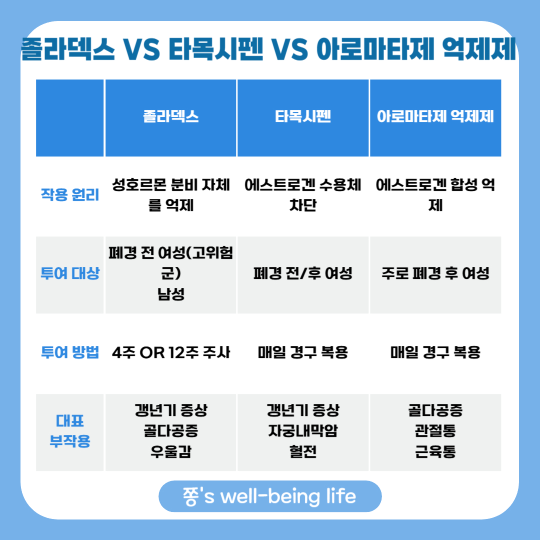 졸라덱스 VS 타목시펜 VS 아로마타제 억제제 비교