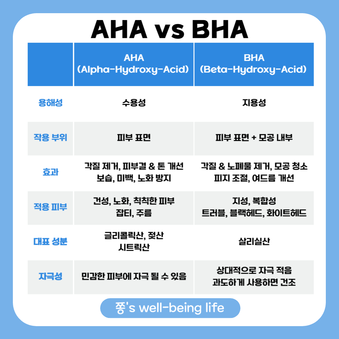 아하(AHA)와 바하(BHA)의 차이점, 각각의 장단점, 올바른 사용법과 주의사항까지