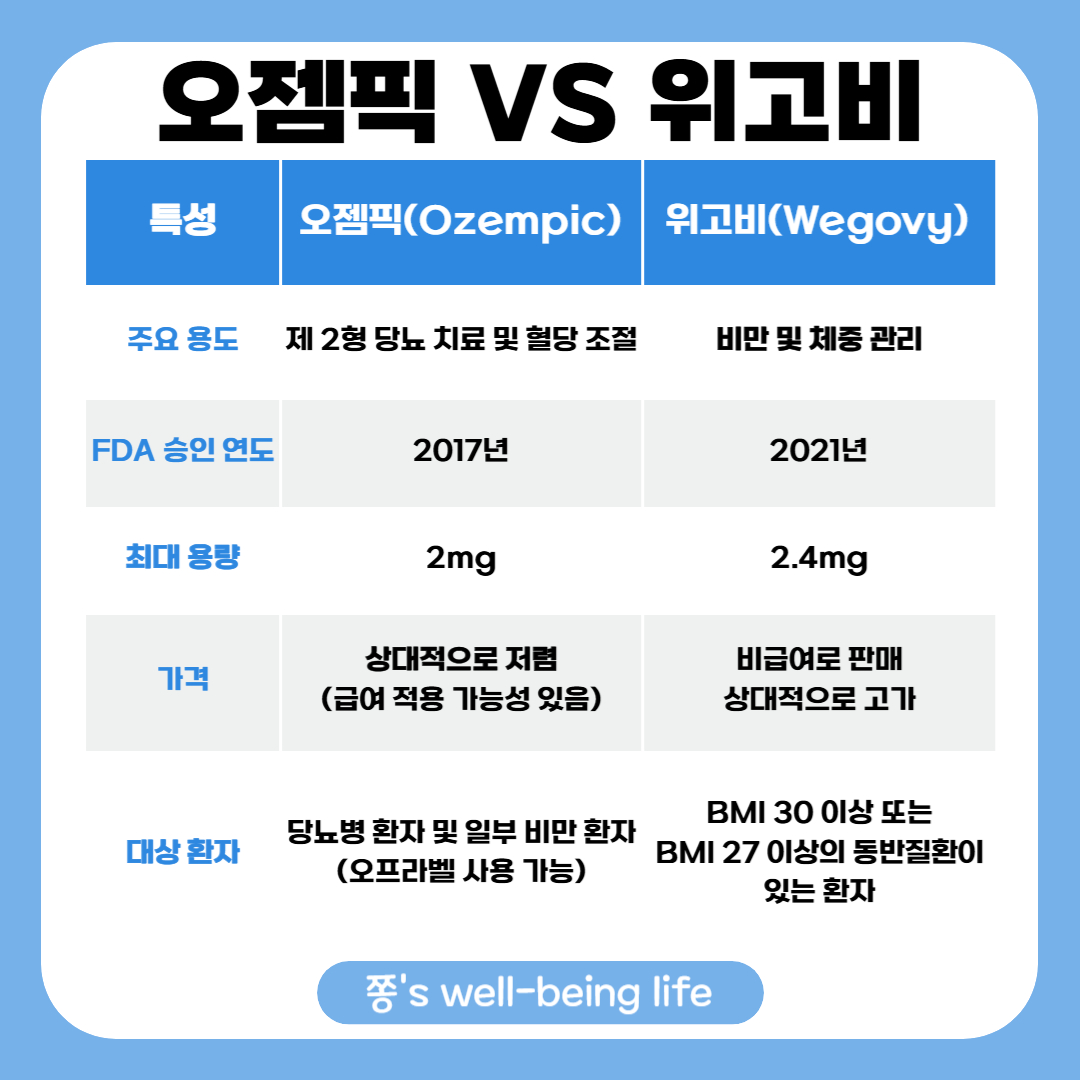 오젬픽과 위고비의 차이점
